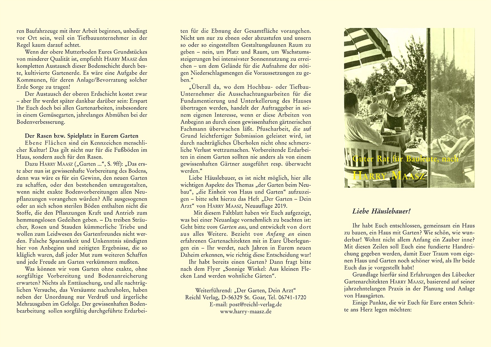 Dazu HARRY MAASZ ("Garten ...", S. 9ff): "Das erste aber nun ist gewissenhafte Vorbereitung des Bodens, denn was wäre es für ein Gewinn, den
